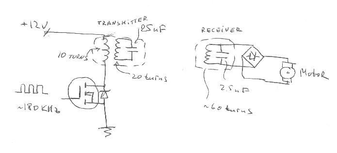 Para esto se utilizó un motor alimentado inalámbiramente dentro del globo flotante, un generador de frecuencia a base de microcontrolador, que envía una onda cuadrada un MOSFET que maneja el devanado primario (10 vueltas) del circuito de salida. El devanado secundario forma un circuito LC (20 vueltas y 25 nF) y sirve como antena transmisora. El generator de frecuencia puede ser ajustado manualmente para controlar la frecuencia de rotación.