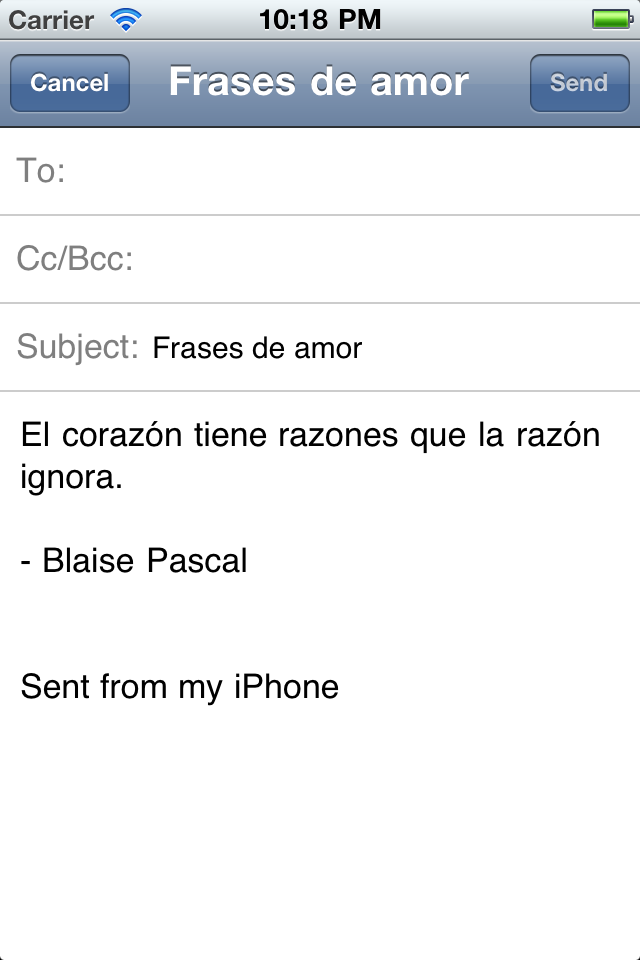 -Presiona el botón de email para enviar la frase por correo electrónico.