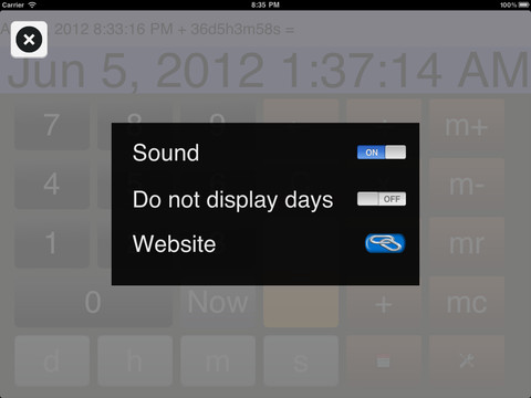 1. Thanks, I replied using the link supplied in the app that took me to a Spanish language blog site where it appeared some comments had already been made. I found this link this time by following app support from the I store page. I am using an iPad with iOS 5.1 and I have downloaded your update. The do not display days option does not work! If you select it on, the display still shows days in the answer. The weblink in the app does not work. The bug that froze the application after selecting the now calendar function and then cancelling the action seems to be rectified. I hope that helps.