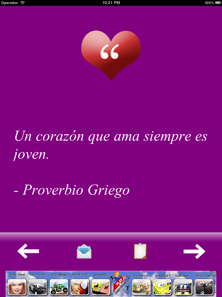 -Presiona los botones de flecha para ver diferentes frases de amor inspiradoras para tu corazón.