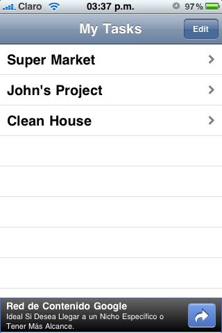 This is the simplest way to have a collection of todo lists in your iPhone, iPod Touch or iPad. Create lists and into the lists create tasks. You can have a todo list for the things you need to buy in at the super market or a todo list for things you need to do in your home.